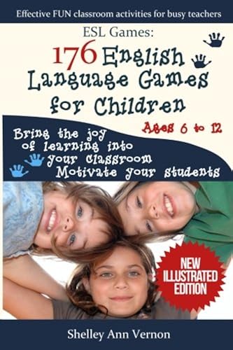 Be a successful, fun teacher with this action-packed games book for children learning English & FREE BONUSHow would you like to have happy, motivated pupils who love learning English with you ? Now you can. Have you noticed how kids tend to forget everything you covered in the previous lesson ? The vocabulary goes in one ear and out the other ! 176 English Language Games for Children solves that problem, by making repetition fun. Now you can drill your pupils in new vocabulary and grammar until they are blue in the face and they won’t hate you, they’ll love you for it ! Now they will be motivated and enjoying your lessons. They will gain confidence in speaking, remember what you teach them and get better results.You may contact the author for help anytime. Every query is personally answered by Shelley.With the help of numerous teachers writing in with feedback over the years, Shelley Ann Vernon has created a fabulous collection of fun, easy ESL games for the classroom. This is a great book for the staff room bookshelf, and for any ESL teacher out there who wants to get better results and prepare fun lessons quickly.What you will get from this book:Easier, faster lesson planningFun language drills for learning new vocabulary and grammarFun ways to have all the children speaking as much as possible during lessonsClassroom management strategies that work in the real worldGames for listening, speaking, spelling, reading and writing skillsAnd you may even become a more popular teacher It can be a challenge learning to teach, or changing your teaching style but if you do it with one new game a day, you'll soon become the inspirational teacher you really want to be.Getting Your FREE BonusInside this book is access to a series of elementary lesson plans made from games in the book. By using these lessons you'll be taken through the six steps to a fun, yet effective classroom. Buy your copy of ESL Games: 176 English Language Games for Children by scrolling up and clicking Buy Now With 1-Click.